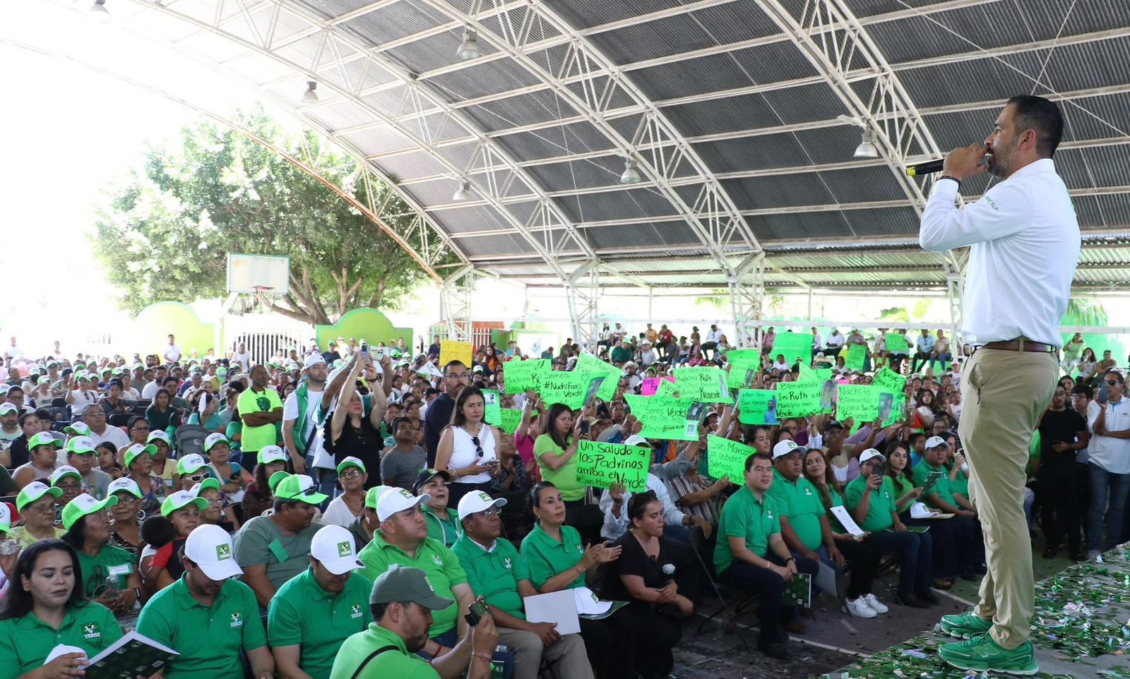 La Senadora estuvo acompañada por alcaldes y alcaldesas de la región Media del Estado, diputadas y diputados locales y federales, así como por el dirigente estatal del partido en un evento que reunió a miles de militantes y simpatizantes que confirman al Partido Verde como la primera fuerza política en Rioverde y en todo San Luis Potosí.
