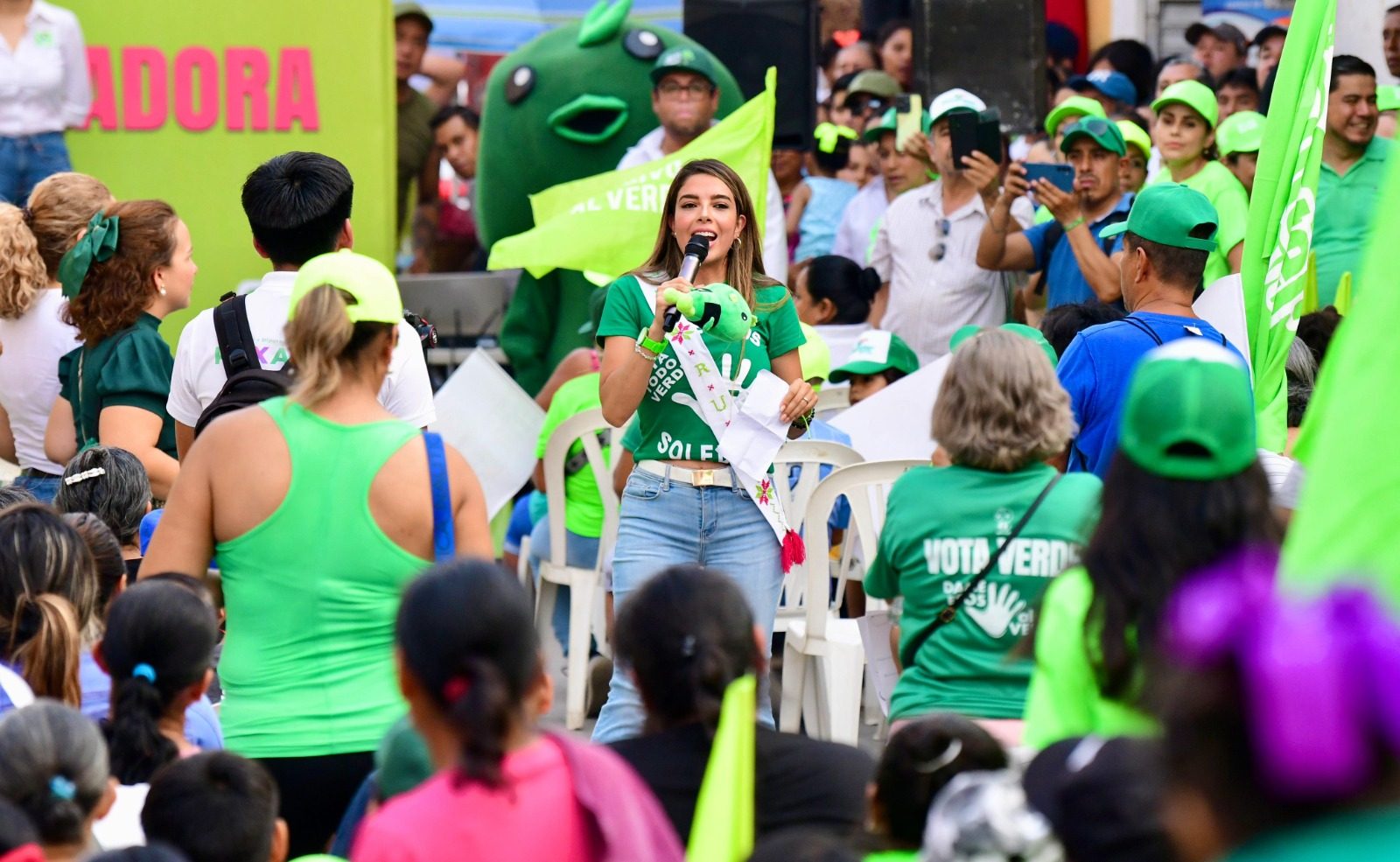 “El Gobierno del cambio emanado del Partido Verde ya demostró que sabe gobernar, sabe dar resultados que han mejorado la vida de las y los potosinos, en la Huasteca tenemos mejor conectividad con nuevas carreteras, escuelas remodeladas y miles de beneficiarios de los programas sociales, por eso el 2 de junio debemos acudir a las urnas y votar por la y los candidatos del Partido Verde”, dijo la incansable candidata Ruth González.