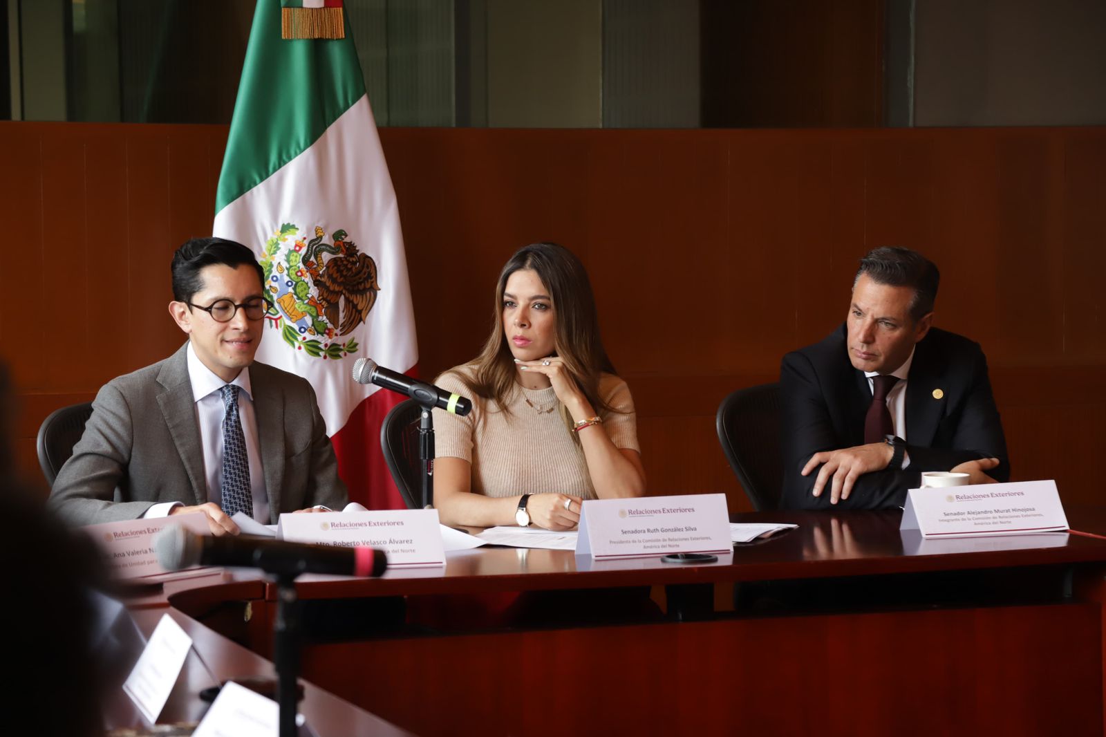 Luego de encabezar un encuentro junto con Roberto Velasco Álvarez, Jefe de Unidad para América del Norte de la Secretaría de Relaciones Exteriores (SRE), así como los Cónsules Generales de México en nueve ciudades clave de Estados Unidos y Canadá, la presidenta de la Comisión de Relaciones Exteriores América del Norte del Senado de la República, expresó que el trabajo coordinado es clave para seguir fortaleciendo la defensa de nuestras y nuestros connacionales. “Somos una gran familia que lucha por México desde cada trinchera”, expresó González Silva durante su intervención.